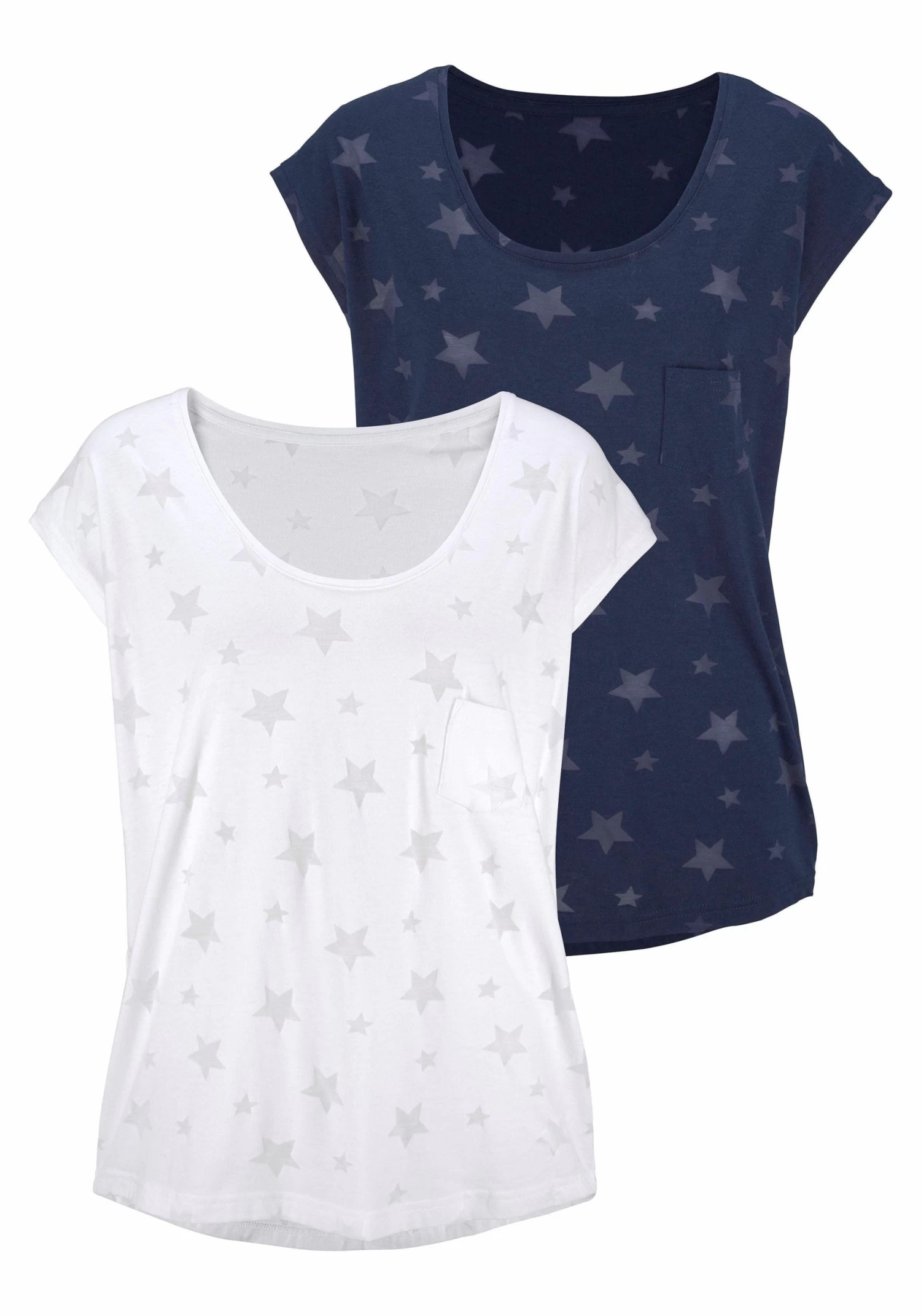 Van BEACHTIME. T-shirt, in set van 2. Trendy look met sterrenmotief in etskant-look. Casual pasvorm met borstzakje. <br><br>Shirt van 50% katoen, 50% polyester.