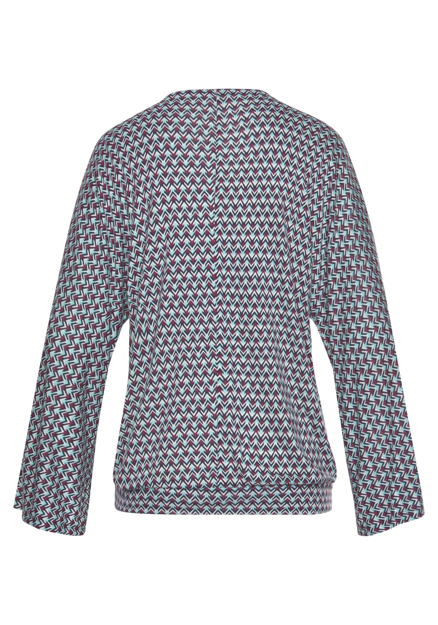 In casual model met brede boord bij de zoom voor een losse val. Wijde driekwartmouwen. In 2 dessins of in uni-zwart, elk gedessineerde exemplaar is uniek. Lengte ca. 64 cm.<br><br>Van 100% viscose.