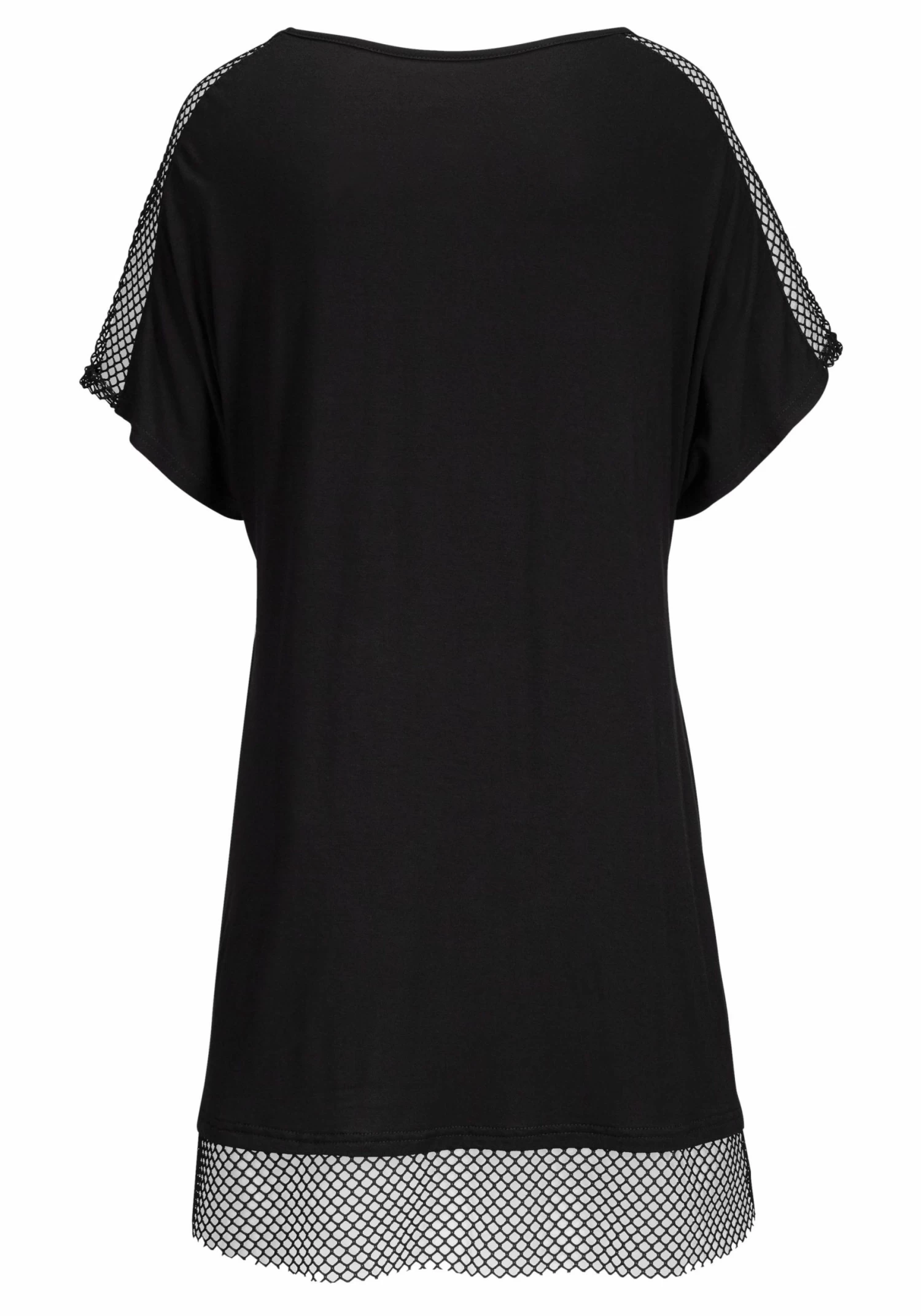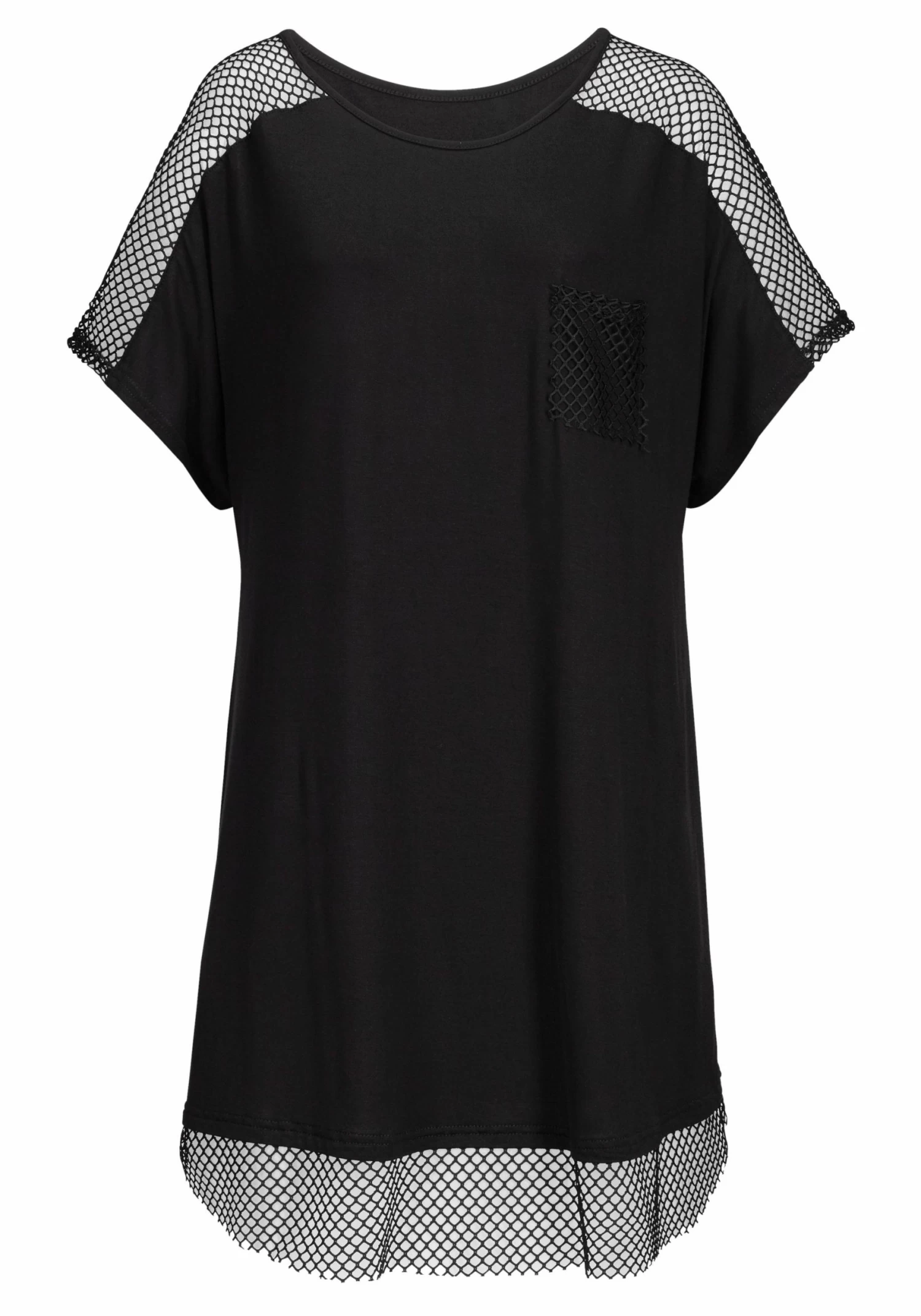 Mesh-inzetten aan de mouwen en onderlangs. Opgestikte zak van mesh. Lengte ca. 84 cm. <br><br>Van 95% viscose en 5% Elastan.