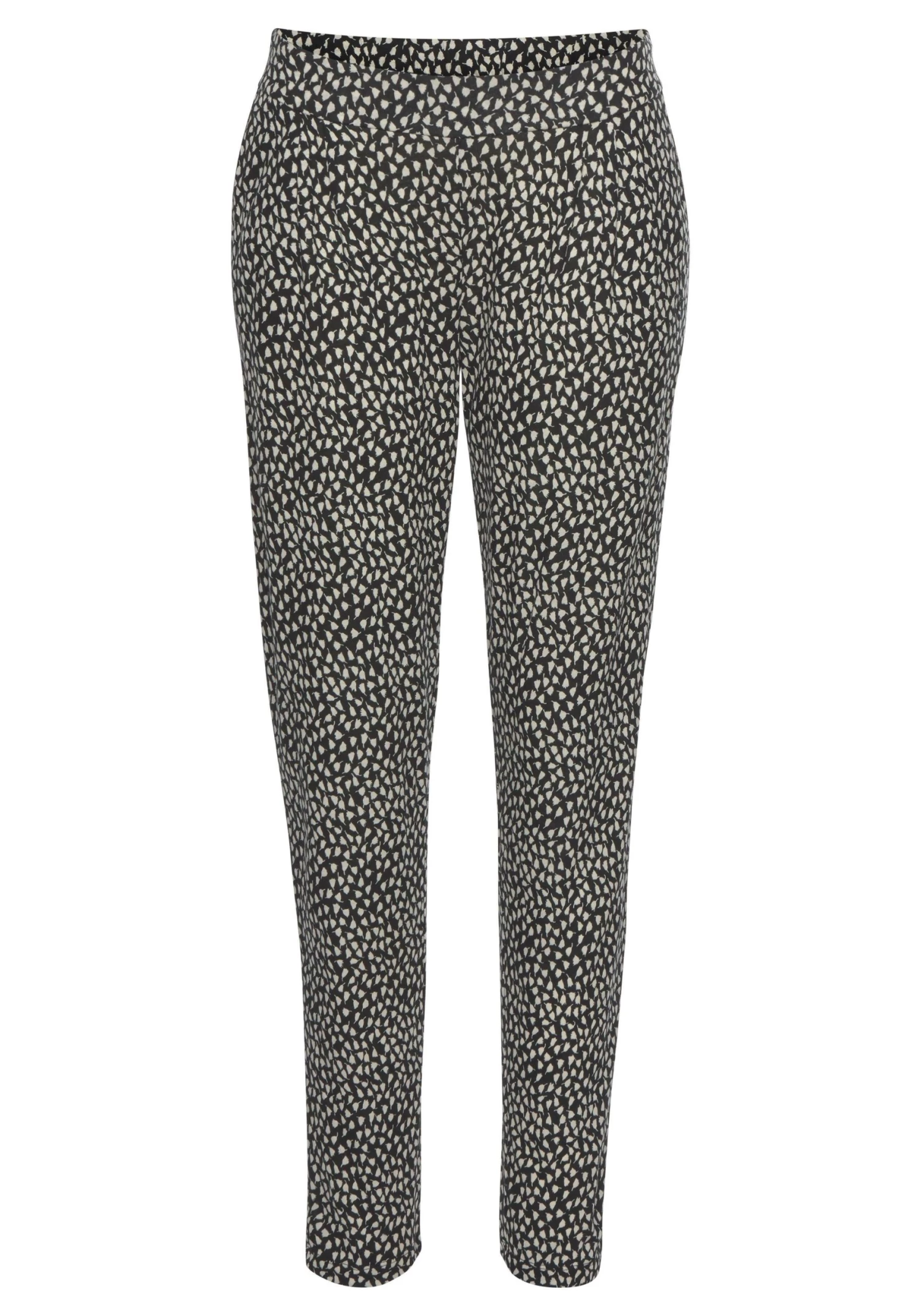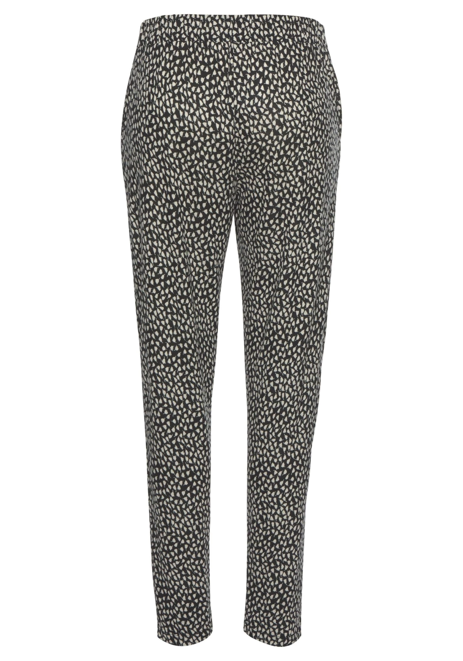 Met steekzakken opzij. Elastische band en bandplooien. Elke print is uniek. Binnenbeenlengte ca. 74 cm.<br><br>Van 100% viscose.