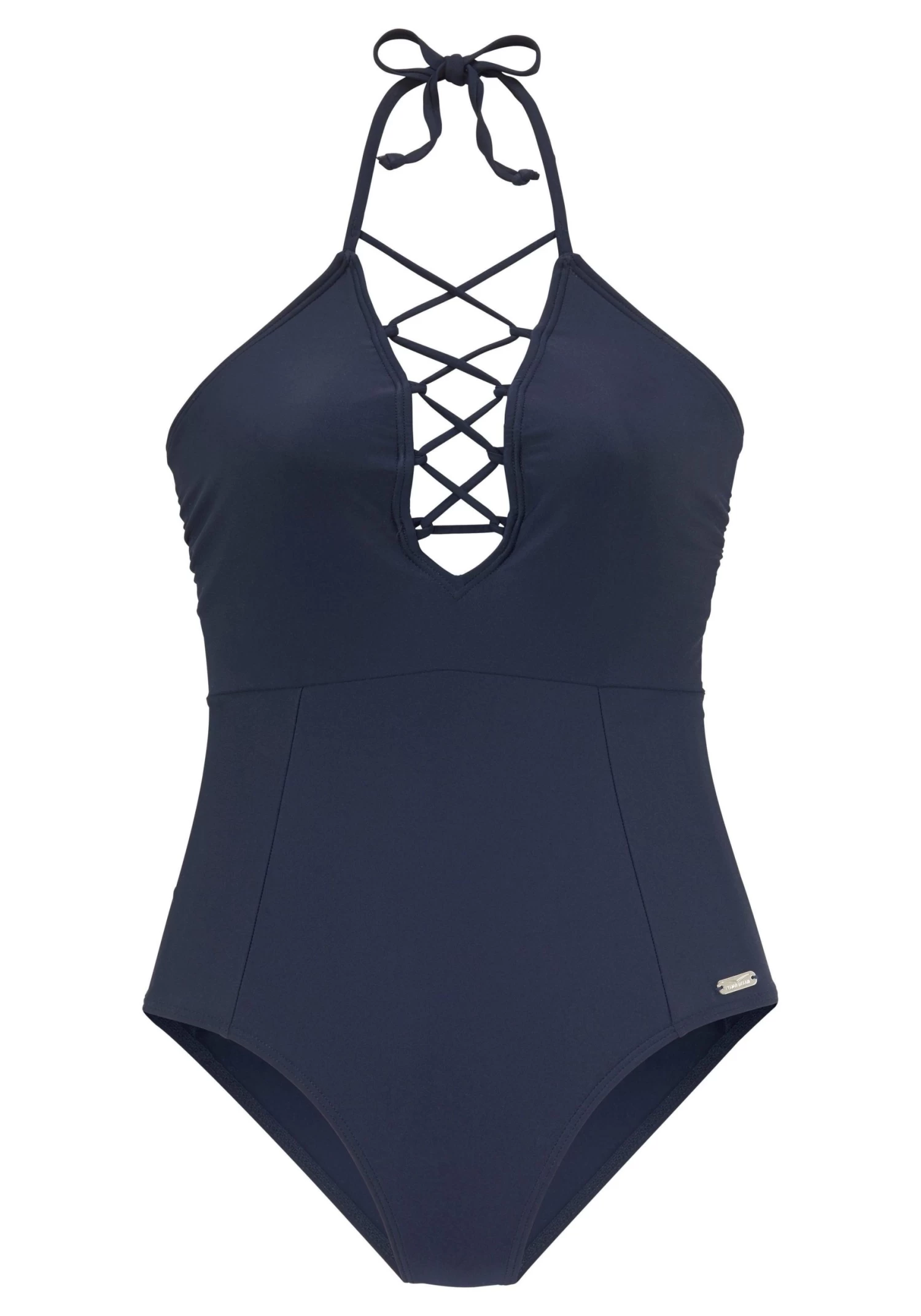Trendy siersluiting bij het decolleté. Met uitneembare vullingen. In de nek te strikken en met rugsluiting.<br><br>Van 80% polyamide, 20% Elastan (Xtra Life LYCRA®). Voering: 100% polyester.